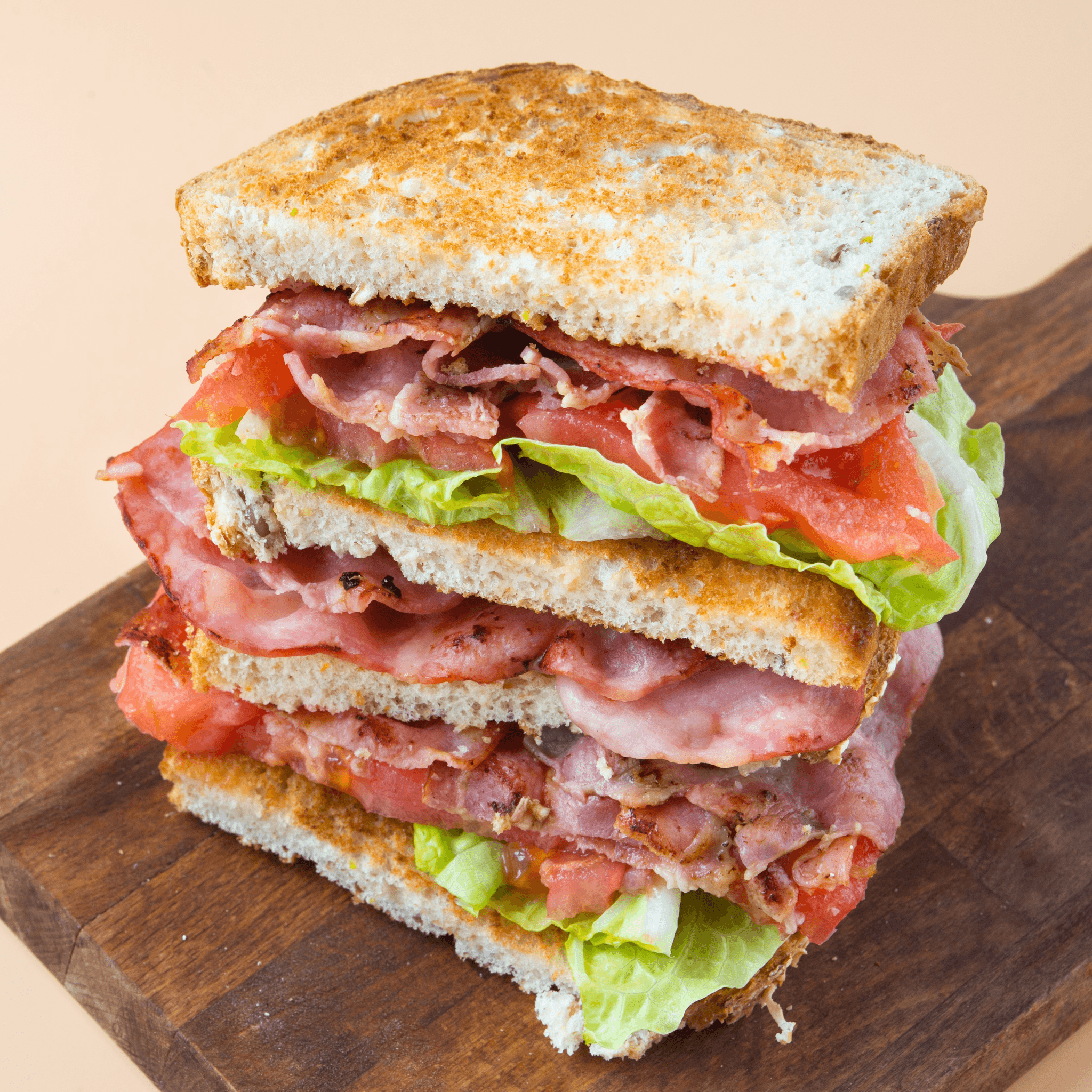 Ham, bacon, smoked provolone, lettuce, tomato, BBQ mayo spread